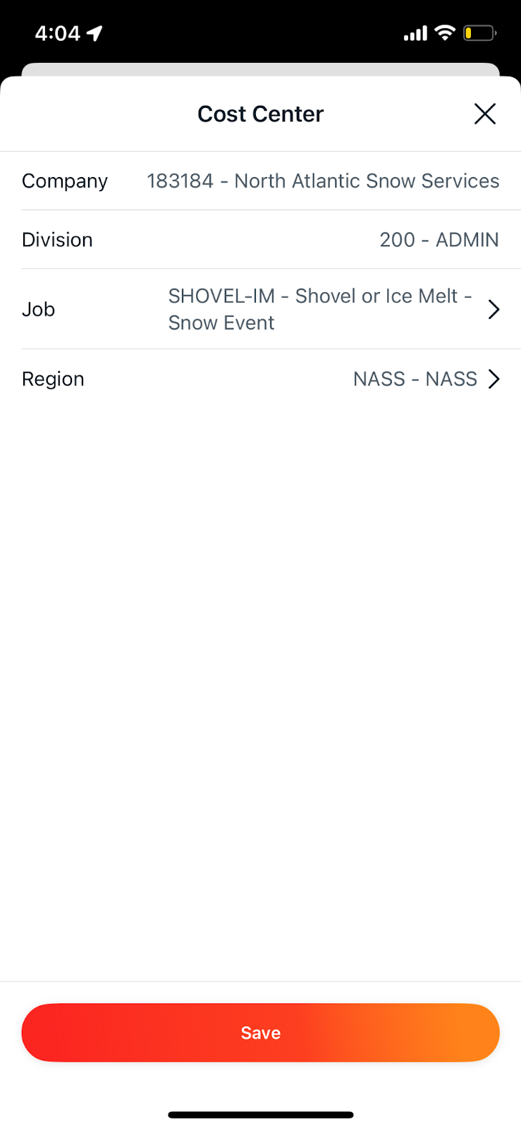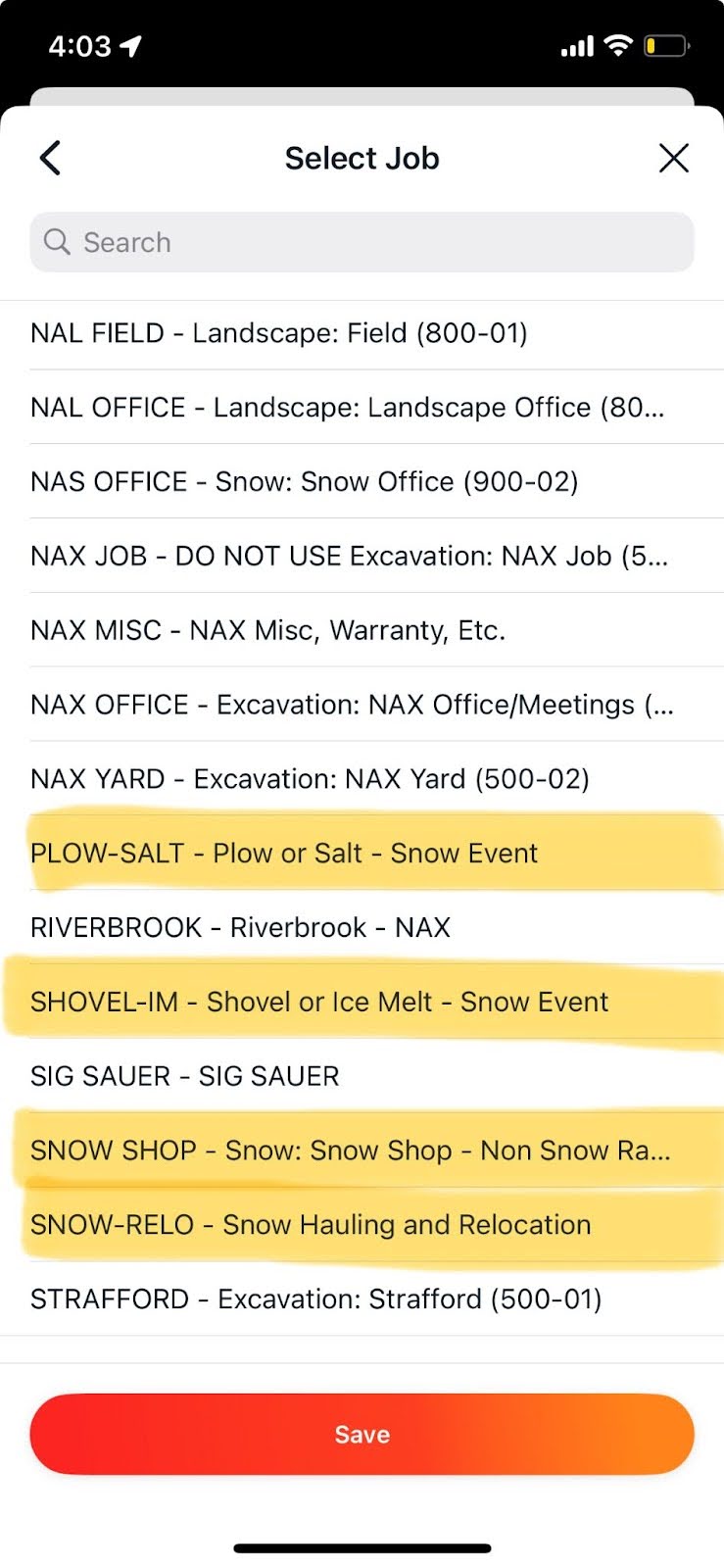 Select the appropriate SNOW, PLOW or SHOVEL job that applies to you.