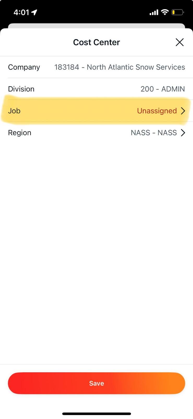 Select Job to indicate what you’re doing, then select the job that you’re clocking into.